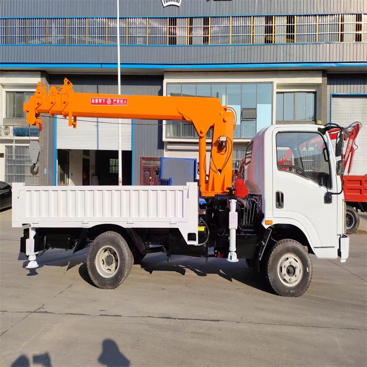 武强县重汽豪曼小型四吨直臂蓝牌随车吊厂家 起重机价格